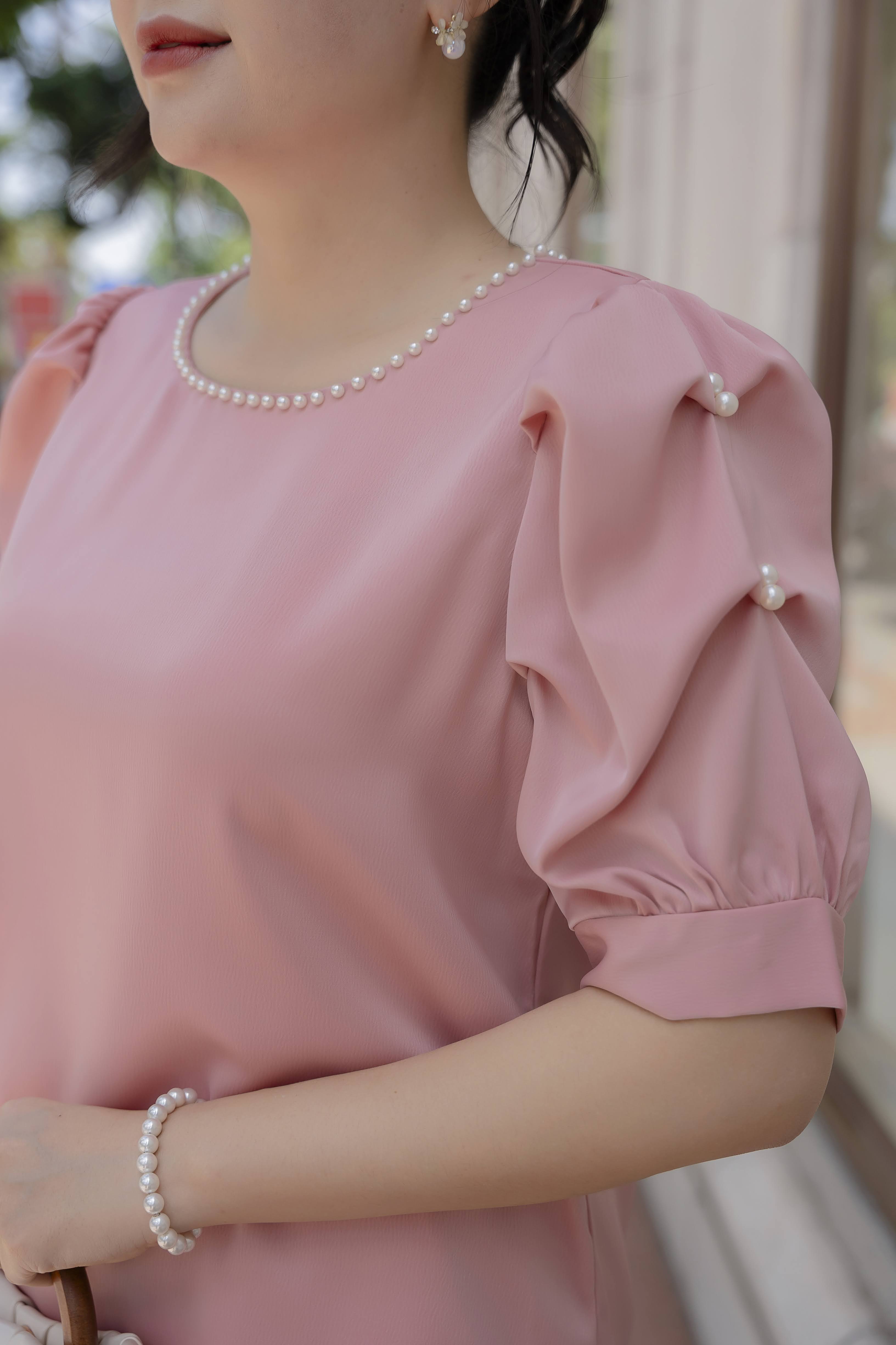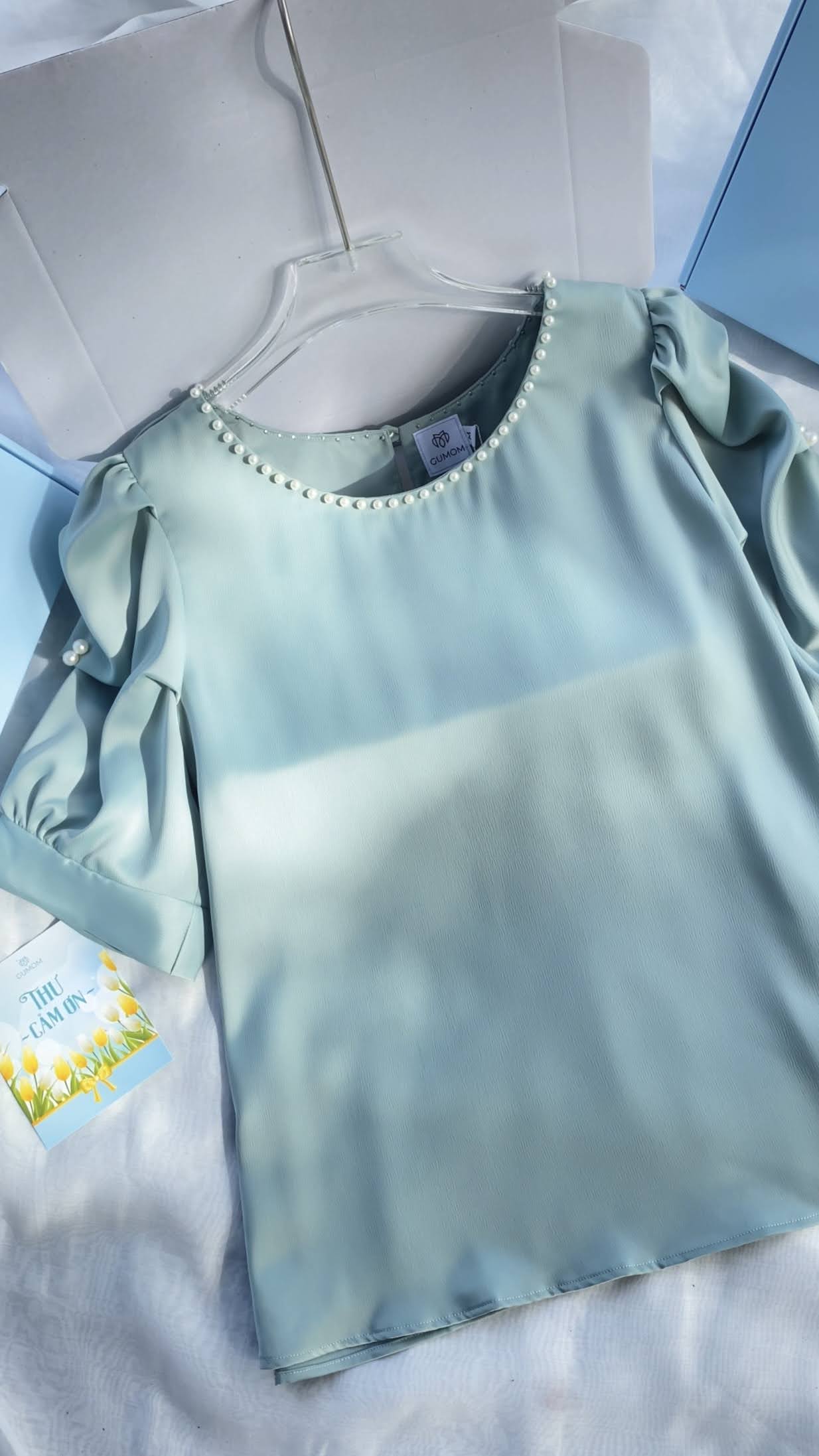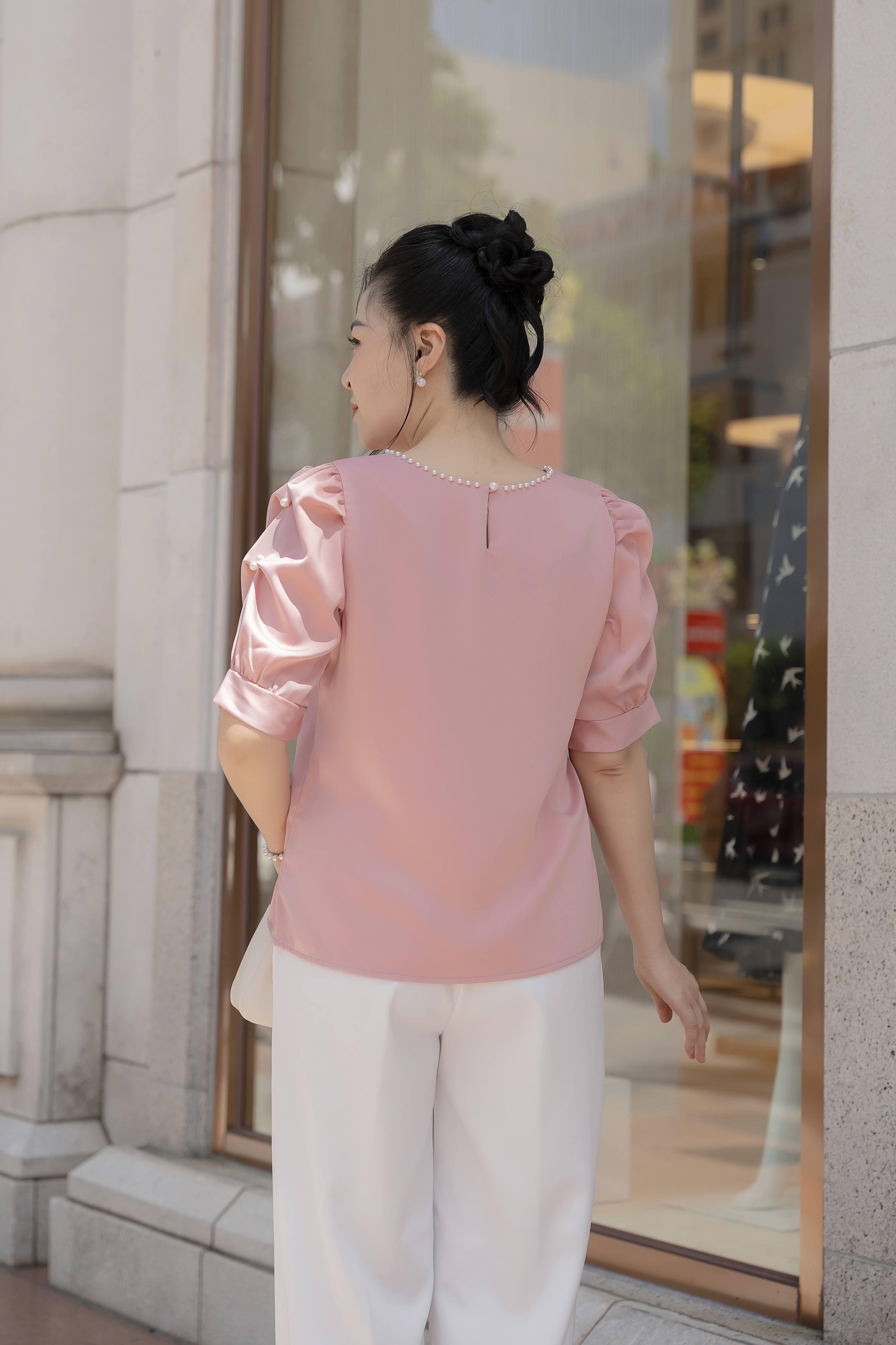 GUMOM Áo Kiểu Trung Niên U50 U60 Cao Cấp Cổ Tròn Đính Ngọc Sang Trọng Cho Nữ - Women