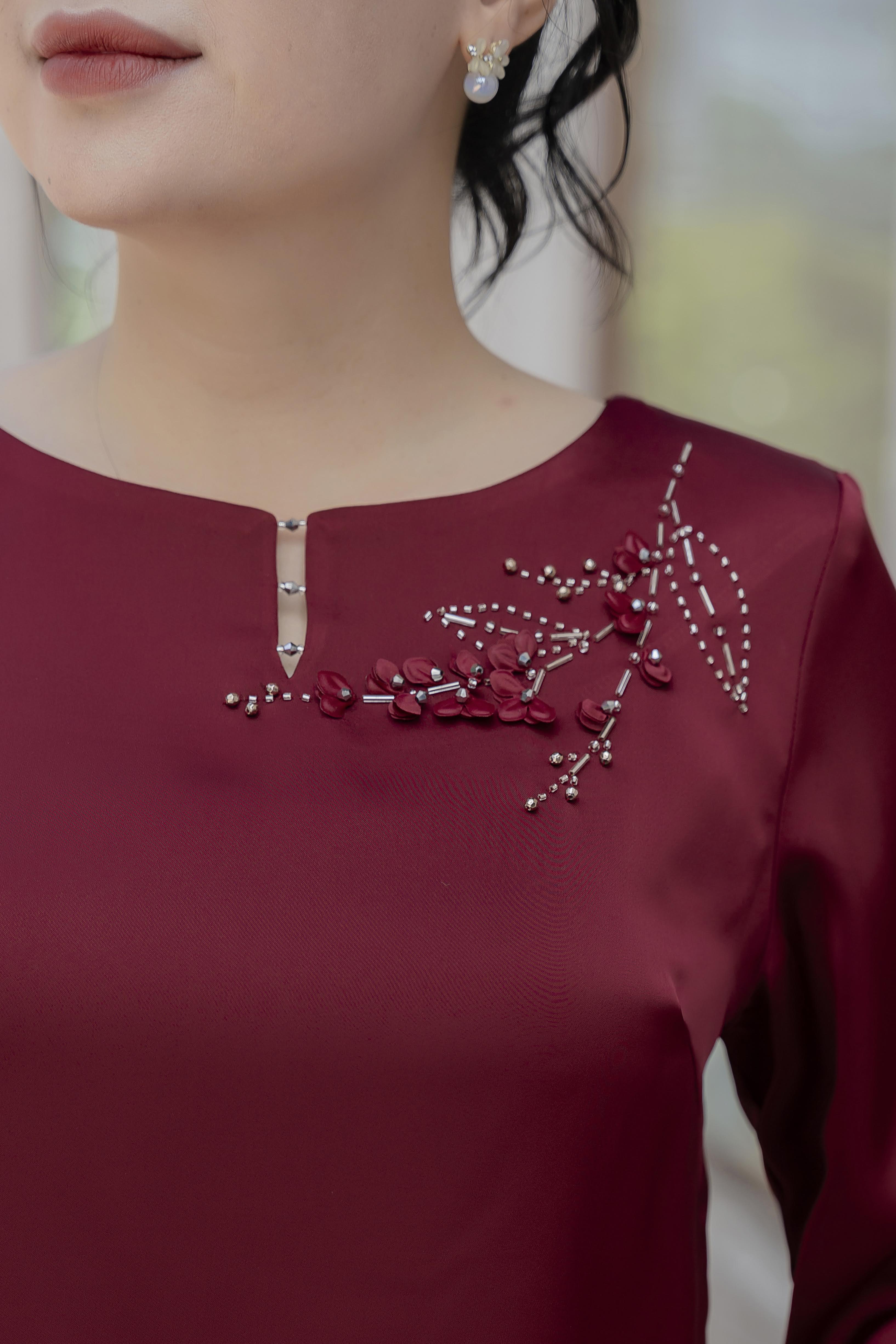 THÔNG SỐ Áo Cổ Tròn Tay Lỡ Thêu Hoa Đính Nút Sang Trọng
