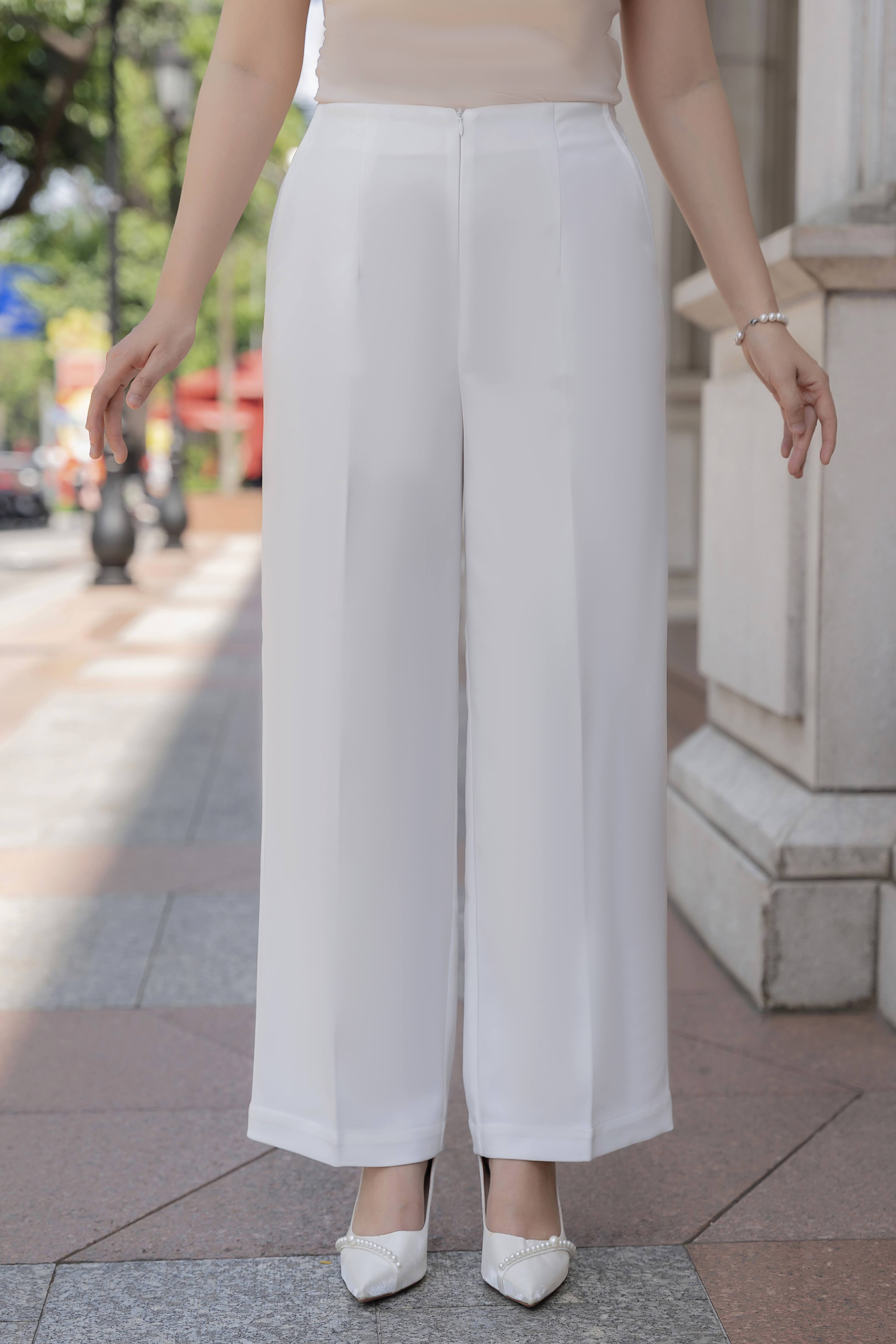 GUMOM - Quần Trung Niên Nữ U50 U60 Quần dài trắng ống rộng dáng suông lưng thun một mặt Quan trung niên cao cấp cho mẹ Nhung Ong Áo Nhung Ong Áo Women Pants